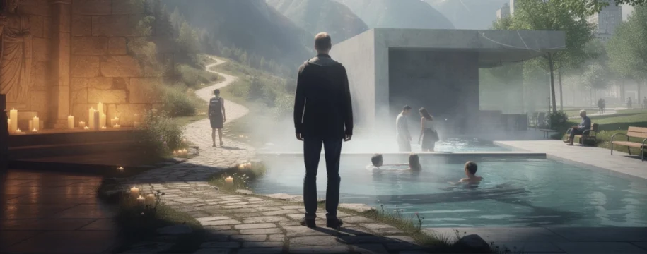 Dans cette architecture phénoménologique, l’objectif n’est pas seulement de loger une fonction (se baigner), mais d’orchestrer une suite de sensations qui engagent le corps entier : variations de température, contrastes lumineux, changement de réverbération sonore entre les bassins, odeur minérale de la pierre humide. Comme un scénario, le parcours est pensé pour que chaque séquence s’inscrive fortement en mémoire. Vous ne retenez pas seulement la forme du bâtiment, mais la manière dont il vous a fait vous sentir.